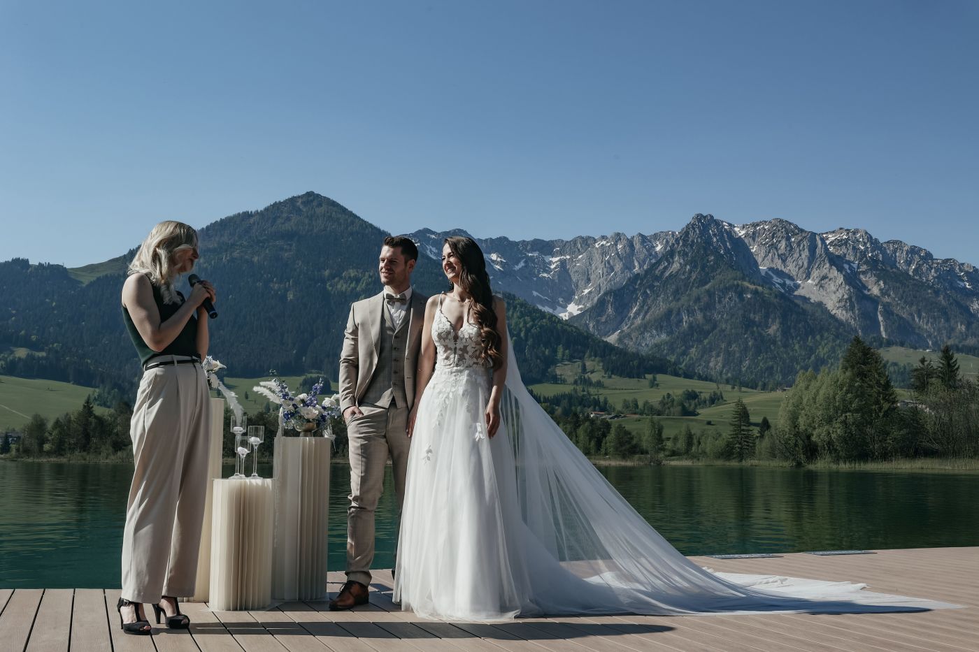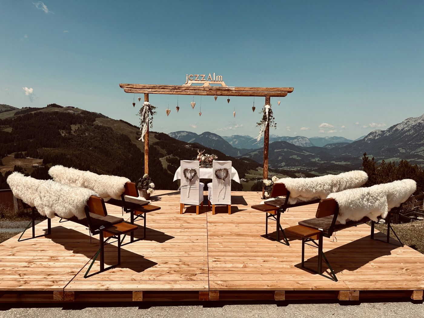 Wir vom jezz AlmResort sind überzeugt, dass der schönste Tag im Leben den besten Ort verdient hat. Und genau den haben wir hier bei uns gefunden. Wo könnte man sich besser das JA-Wort geben als auf 1250 m, dort wo sich Himmel und Erde küssen und mit dem Wilden Kaiser als Ehrengast. Wir wollen, dass euer Fest der Liebe unvergesslich wird. Eine immersive Erfahrung. Für Körper, Geist und Seele - und die Erinnerungen daran ein ganzes Leben hindurch anhalten. Die Zeremonie auf unserer Aussichtsplattform im Angesicht mit dem Wilden Kaiser und der eindrucksvollen Bergkulisse werden euch ein fantastisches Gefühl bieten. Eure Traumhochzeit mitsamt kulinarischer Begleitung in unserer exklusiven Location ist ein Garant für leuchtende Augen, unvergessliche Geschichten und Momente voller Glück.