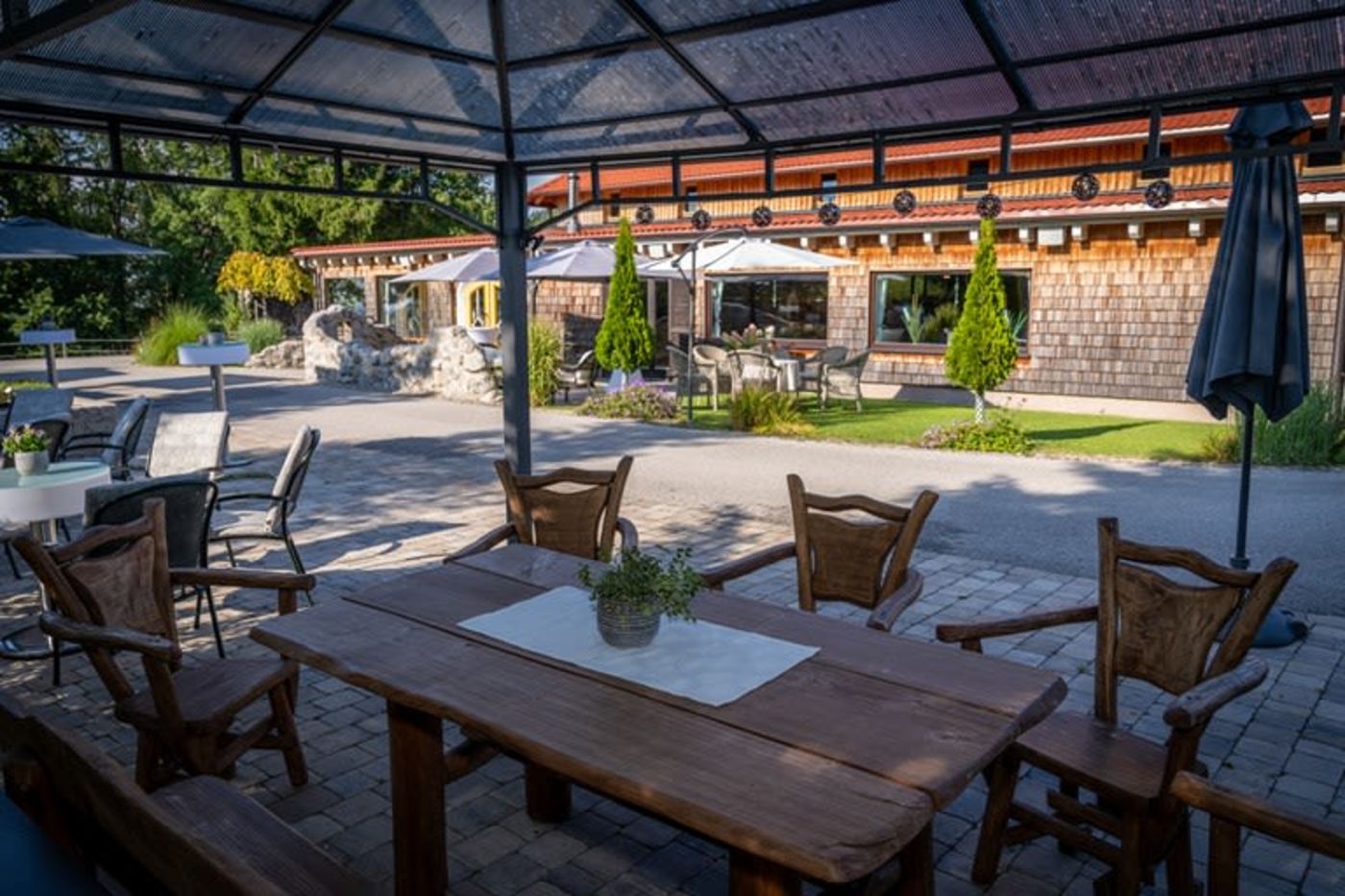Die Location liegt am Ende einer Bergstrasse, das Resort liegt ruhig in Mitten der Natur mit einem fantastischen Blick über Berge, Wiesen und Wäldern. Sowohl für das leibliche als auch das psychische Wohl ist gesorgt. Ruhe, Entspannung, toller Ausblick..alles in allem ein Genuss