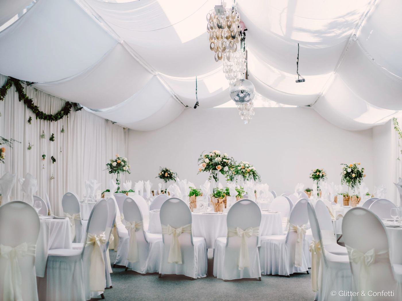Als "Wedding-Spezialisten" setzen wir auf maßgeschneidertes, auf Hochzeiten abgestimmtes Equipment. Dieses Equipment passt perfekt zur Hochzeitslocation und trägt stilvoll zur Atmosphäre bei. Ihr habt die Wahl, ob alles in Weiß oder dezent in Schwarz gestaltet werden soll - die Farbe des Equipments liegt ganz in eurer Hand!