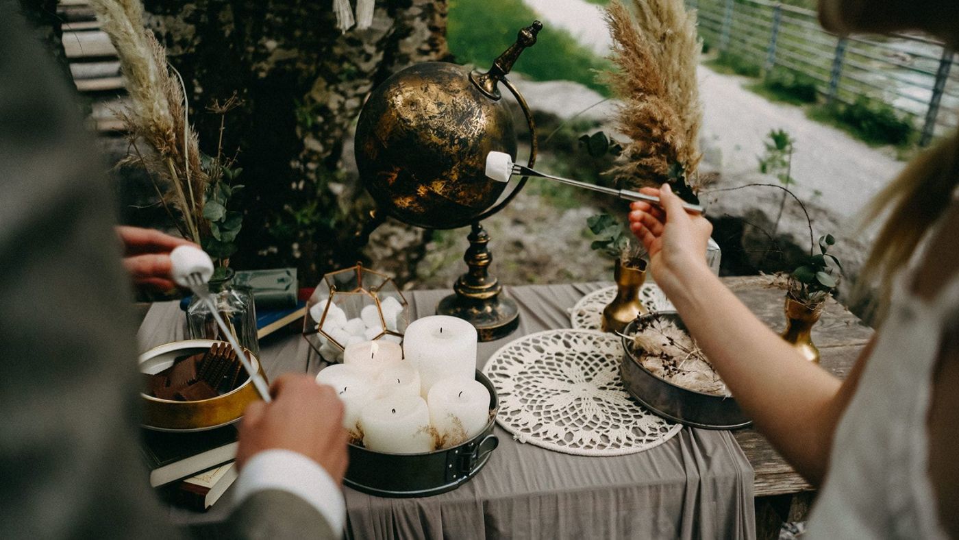 Ein ganz besonderes Erlebnis bietet die Maisenburg im Winter: Schon von weitem erstrahlt das Hofgut im Lichterglanz. Fackeln weisen den Weg zu beheizten Pagodenzelten für den Empfang, und auf der spektakulären Infinity-Terrasse lädt eine gemütliche Winterlounge mit Fellen und Decken zum Verweilen ein. An stylischen Feuerschalen können zudem köstliche Spezialitäten frisch zubereitet werden – ein stimmungsvoller Rahmen für unvergessliche Winterhochzeiten.