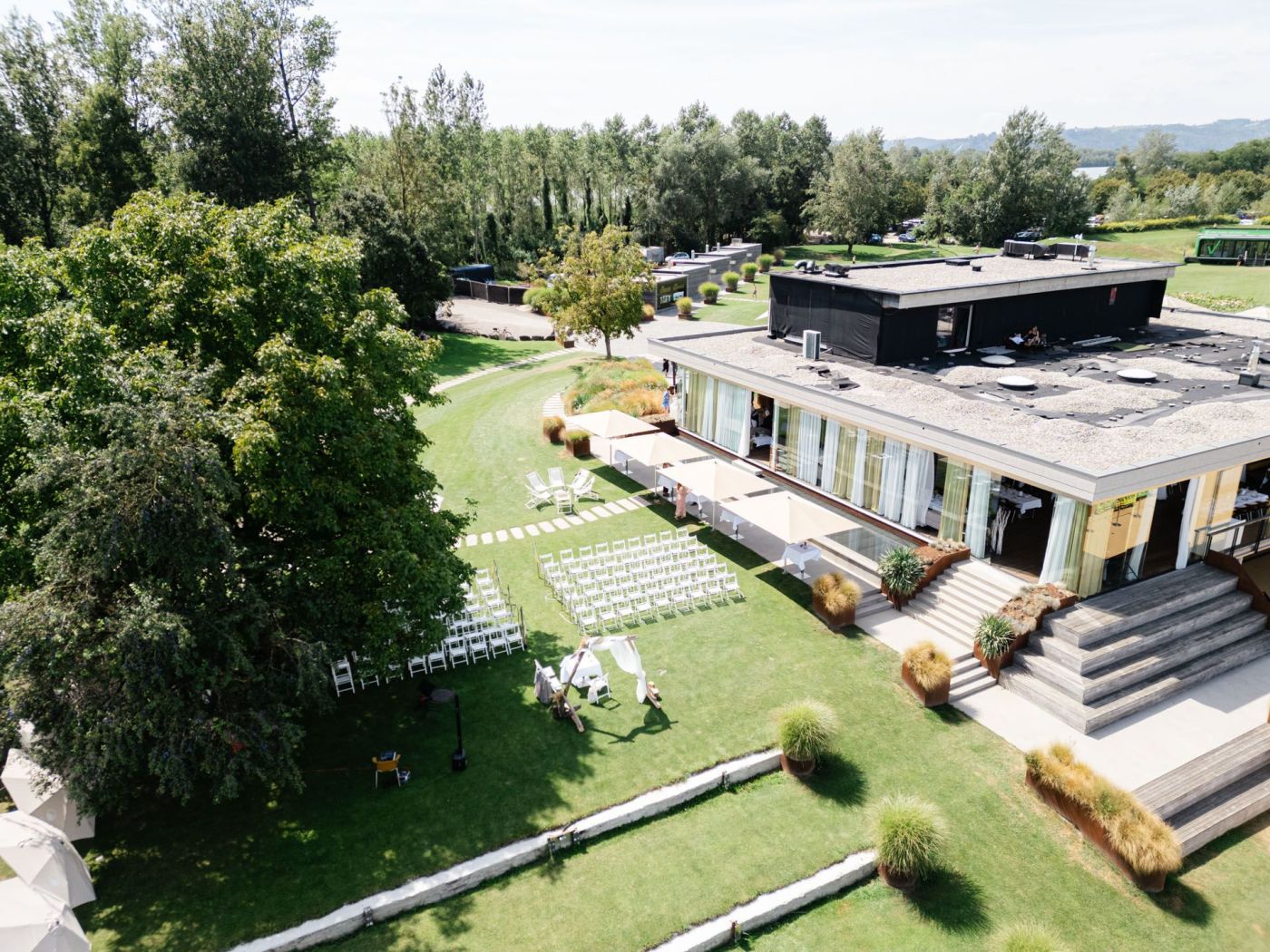 Die perfekte Hochzeitslocation mit einer schönen Mischung aus alt und neu. Selbst bei Regen hat man hier durch eine Glaswand noch eine tolle Aussicht. Die Betreiber sind sehr nett und hilfsbereit.