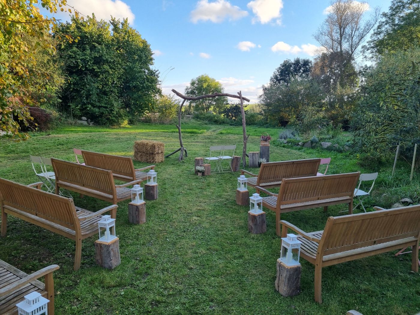 Wunderschöne, romantische Location!! Wir waren zu Gast auf der Hochzeit von Freunden und sind begeistert! Für jeden der auf Vintage/Landhaus steht perfekt. Da wir schönes Wetter hatten konnten wir den wunderschönen Garten ebenso genießen. Vermutlich ist es bei Schlechtwetter wohl immer noch schön, aber ohne Gartennützung würde mir echt was fehlen. Der Raum in dem man isst und die Musik/Band sind in separaten Räumen, das hat wohl Vor- und Nachteile, sollte man einfach in der Planung berücksichtigen. Essen war vom Catering u sehr lecker, Personal überaus freundlich u hilfsbereit. Ebenso der Besitzer, mit dem ich kurz geplaudert habe. Schade dass ich schon verheiratet bin.. das wär die perfekte Location für mich. ;-)